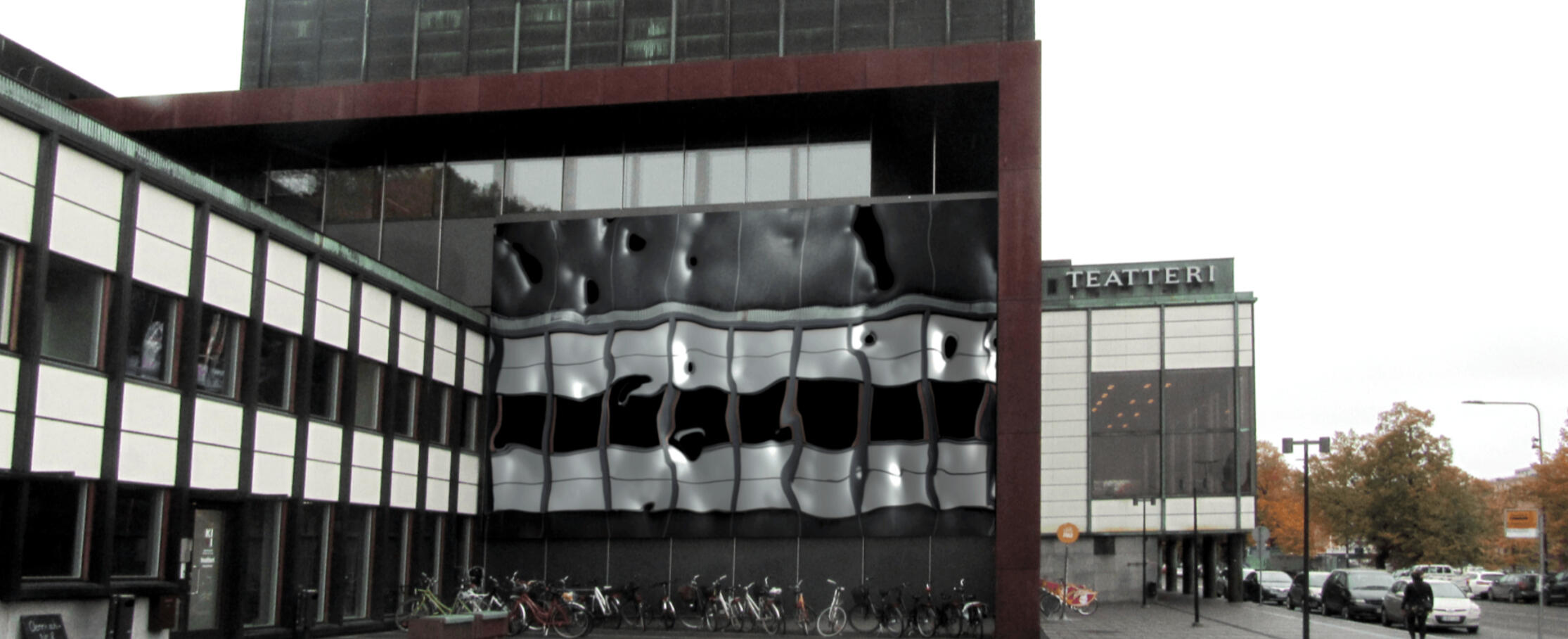 Misconception is a site-specific video work for the LED façade of Turku City Theatre. The screen blends into the building’s surface and comes alive through subtle changes, creating spatial illusions.Small movements make the architecture bend, disappear and transform, inviting viewers to reconsider perception and the nature of seeing.The work is part of the Turku City Art Collection.